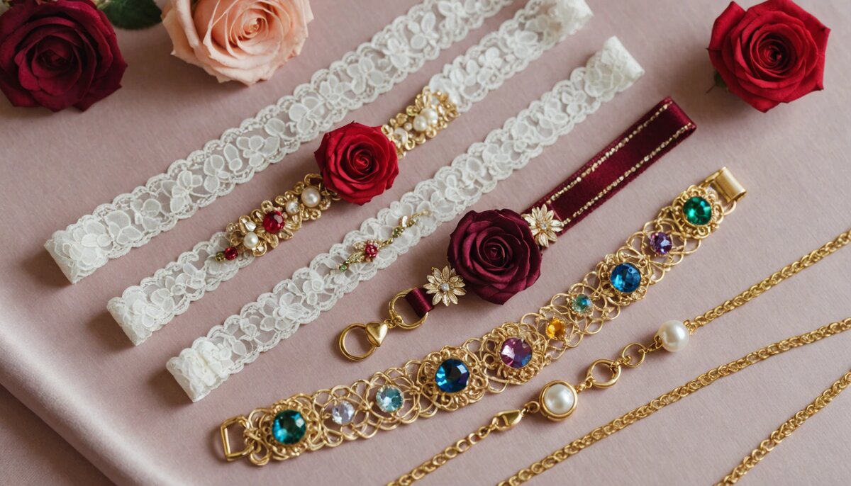 Правильный выбор велюрового чокера напрямую зависит от выреза свадебного платья. Для платьев с V-образным вырезом подойдут тонкие велюровые чокеры с подвеской, которые визуально удлинят шею. Если платье имеет высокий воротник-стойку, можно выбрать более широкий велюровый чоке, который подчеркнет изящность шеи. Для платьев с открытыми плечами идеально подойдет велюровый чокер без декора, который не будет отвлекать внимание от линии плеч.