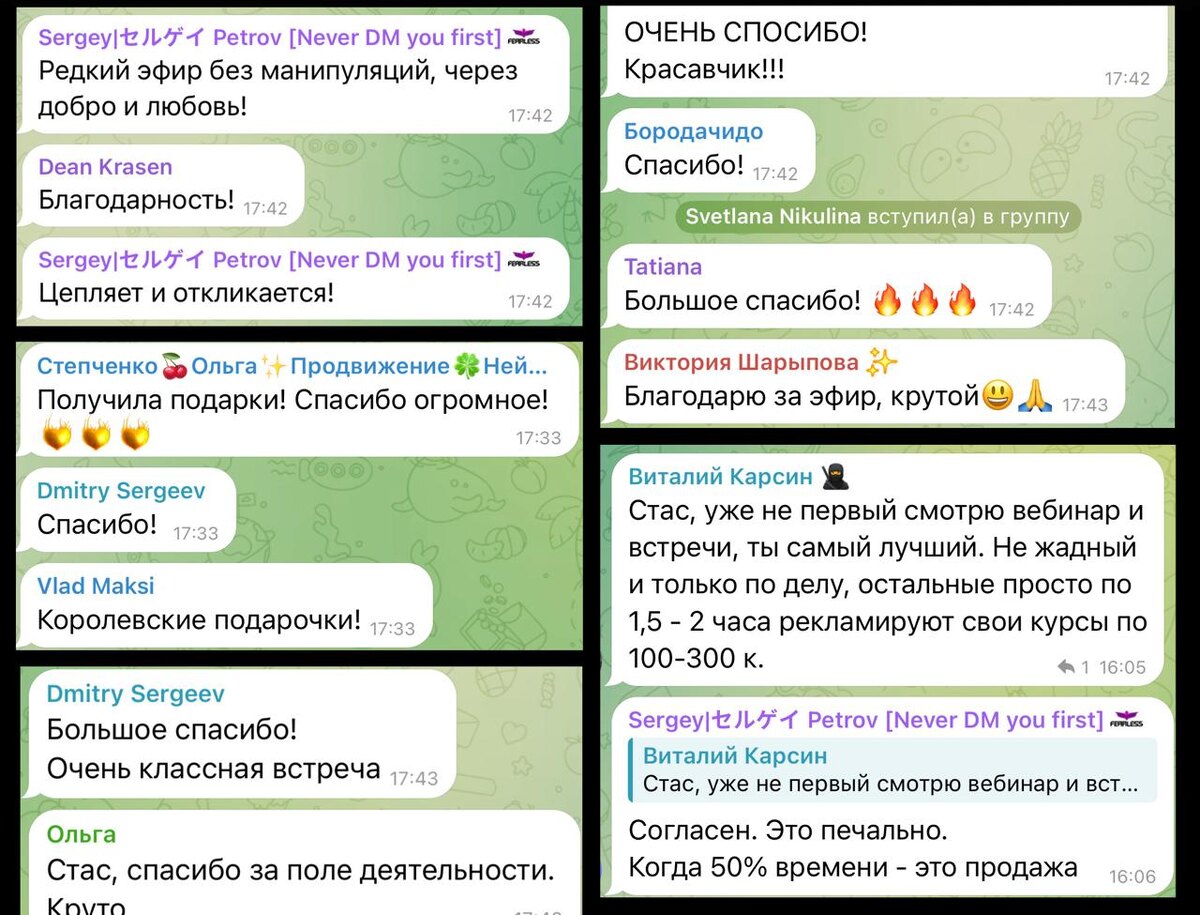 ✔️ГДЕ ВЗЯТЬ ЗАПИСЬ ЭФИРА ПО 5 ИИ МЕТОДАМ РОСТА? 🔥В субботу мы смогли собраться и провести бомбезный эфир с шикарной обратной связью (часть на картинке) Я был очень рад собраться таким количеством и качеством! 🥰Мне уже присылают как пользуются GPTs из методов и какие инсайты ловят! Да что там, сам теперь переписки только и анализирую Если вы пропустили это событие, то для вас хорошие новости. 📱📱Эфир я загрузил на две платформы и вы уже можете его посмотреть с удовольствием и ускорением ➡️Для просмотра идем в бот пользы @nrclublove_bot и пишем слово ЗАПИСЬ (без других знаков и слов) А после просмотра же еще бонусов даю 🎉 ⚡️Доступно будет до 9 июня! Всем откладывающим - просто посмотрите, для вас же польза) откладывать уже пробовали Все таки на кону методы вашего роста как никак! А всю эту неделю я буду обсуждать с вами главные моменты, потому как там есть, что обсудить и обменяться новыми мыслями! 🫰Спасибо за огоньки🔥 и что делитесь! Мур💖