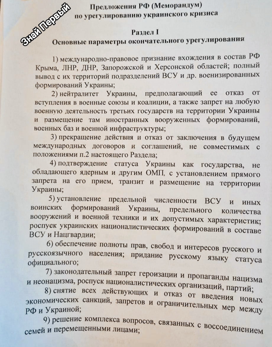 Стамбульские переговоры, текст российского меморандума!