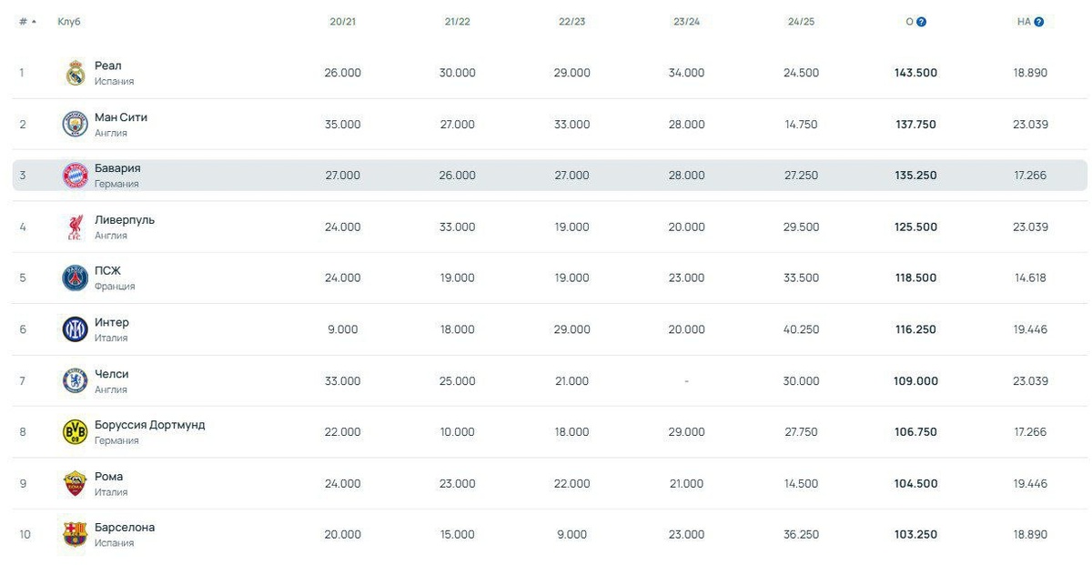 "Реал Мадрид" снова занял первое место в обновлённом клубном рейтинге УЕФА