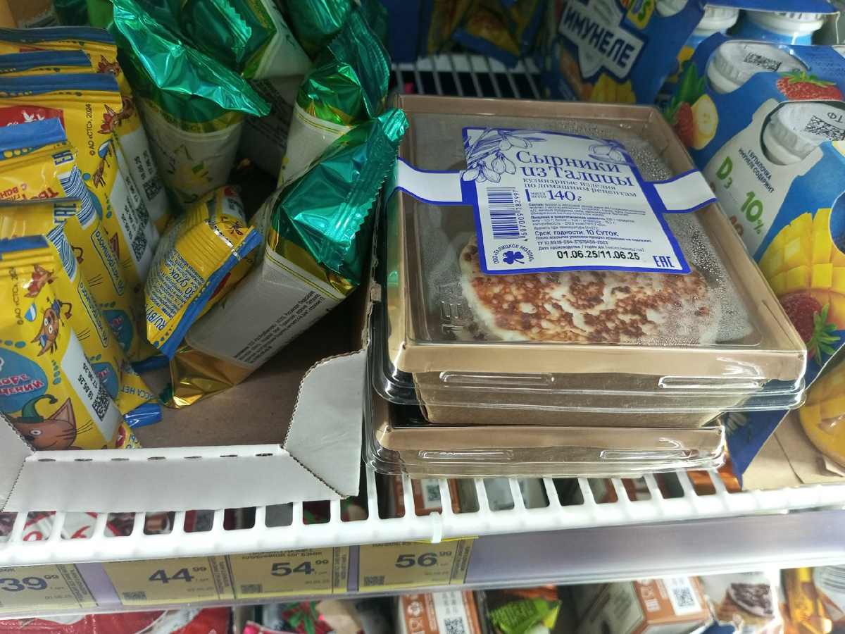 Вы бы могли подумать о том, что в "КБ" будет продаваться готовая продукция? Я - нет, но теперь в холодильнике, где расположены молочные продукты, есть даже сырники. И да, они уже готовые, их нужно просто разогреть в микроволновой печи (а можно есть и холодными), и ву-аля, перекус или завтрак готовы. В упаковке два больших сырника весом 140 гр, приготовлены они прекрасно.