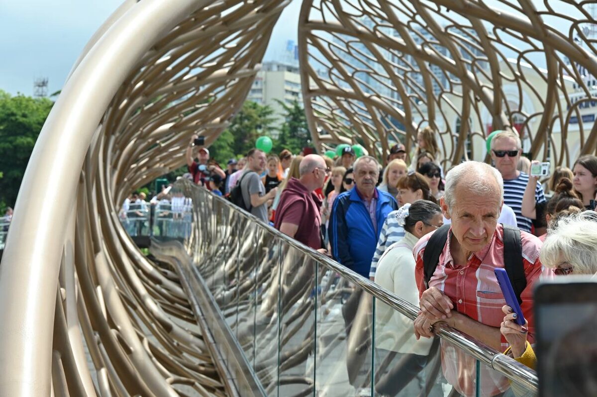 Новый пешеходный мост «Волшебный лист» начал работать в центре Сочи. Он соединил морской порт с парком «Ривьера», сократив путь на 500 метров.