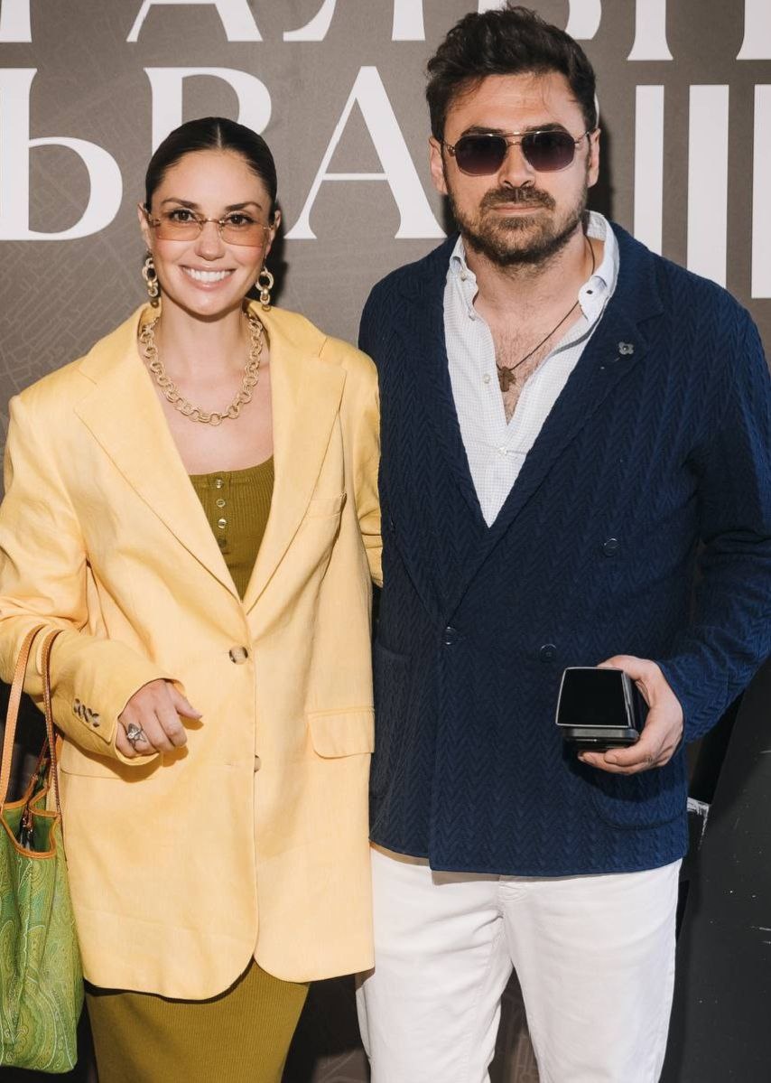 Агата Муцениеце вышла в свет с женихом Петром Дрангой. Бывшая жена Павла Прилучного прячет живот за объёмным пиджаком