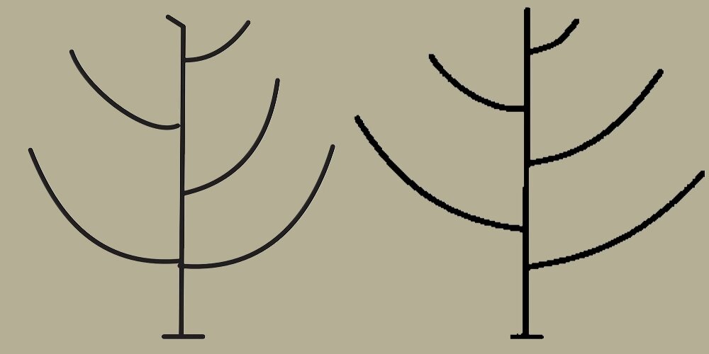 Формирование яруса из двух или более скелетных ветвей значительно снижает механическую прочность центрального проводника. Это создаёт слабое звено в конструкции всего дерева.