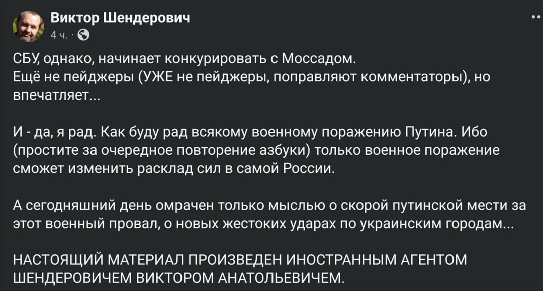 Ибо если брать сферу современного русского искусства, то одной из насущных проблем в ней, как мне и многим кажется, остаётся именно вот такое. То бишь десятки, если не сотни, статей-размышлений, на тему, что "все они вернутся", ежедневно вбрасываются в тот же Дзен или просто в Сеть. Имеется в виду, что предатели, сбежавшие из России, скоро вновь потянутся в неё обратно. Лично я не сомневаюсь, что так оно и будет, ибо оно (в известной степени) и сейчас уже так. Но всё-таки, как видится автору данных строк, у некоторых публичных коллаборантов уже пройдена некая точка невозврата, после которой они уже не смогут, мягко говоря, приехать заново в златоглавую Москву без неприятных для себя последствий. Одним из таких, опять же говоря прилично, недалёких особей, на мой взгляд, является писатель Виктор Шендерович (далее ВШ, ВШе). Которому, видимо, всё не дают покоя "лавры" одной танюськи-беззакуськи, которая как-то публично радовалась бандеровским беспилотникам, подрывающим русские дома. И эта