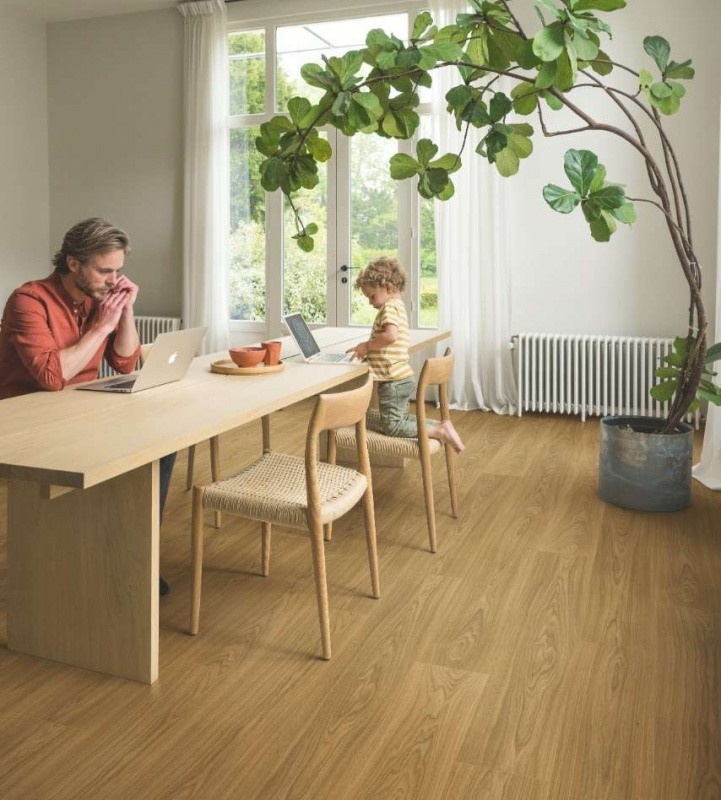 Quick Step продолжает обновлять свой ассортимент. На этот раз очередь дошла до коллекции Classic, очень покупаемой благодаря своим спокойным и стильным декорам, а также из-за отличного соотношения цены и качества. Износостойкость этого ламината маркирована 32 классом и гарантирует службу в жилом помещении на протяжении 25 лет. Влагостойкость поверхности - 24 часа, толщина 8 мм, микрофаска, антискользящая натуральная текстура. Среди новинок этой коллекции буквально "выстрелил" декор Дуб термо натуральный CLH5796. Он теплый и очень уютный, прекрасно подходящий для семейного гнездышка, причем нравится всем поколениям. Дуб песочный греш CLH5791 отличается очень деликатной имитацией состаренности: "трещинки" и "сучки" минимальны, только чтобы придать полу естественности. Этот ламинат подойдет для спальни, гостиной, детской, рабочего кабинета... Дуб туманный серый CLH5795 - рисунок натурального дерева в очень спокойный цветовой гамме. Слегка контрастная фаска подчеркивает геометричность. Под