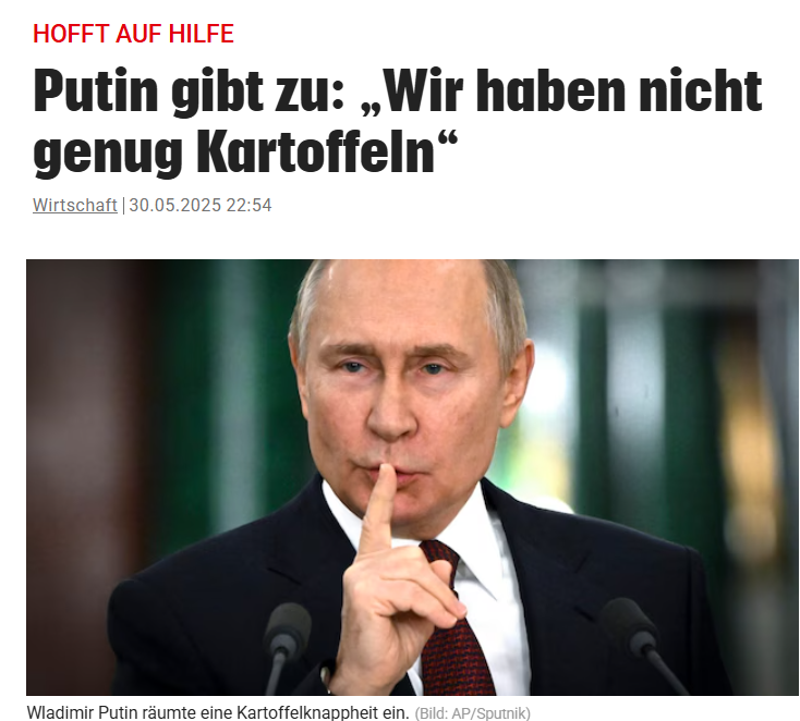 "Kronen Zeitung": "Надеется на помощь! Владимир Путин признал нехватку картофеля в России" - комментарии австрийцев