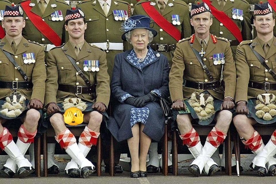 ✏ Семь футов под килтом! 😃 Куда уж без этой легендарной фотографии, которая в свое время облетела весь мир и до сих пор вызывает улыбку и интерес! Речь, конечно же, о Ее Величестве Королеве Елизавете II и бойцах 93-го полка Argyll and Sutherland (Аргайл и Сазерленд Хайлендерс). 💂♂️ В догонку к посту про дресс-код 😄 На этом знаменитом снимке, сделанном во время официального мероприятия, порыв ветра внезапно поднял килты отважных шотландских военных, и стало очевидно: они до сих пор верны традициям! 🌬️💨 Именно так – многие шотландские полки традиционно носили килт "без всего" под ним. Этот обычай берет свое начало из давних времен, когда килт был практичной одеждой для горцев, которая легко сохла и не сковывала движений. Существует множество увлекательных легенд, согласно которым шотландцы, скидывая килты, пускались в бой и одерживали победы над врагами, которые были значительно превосходящими по численности! Это было такое своеобразное, но весьма эффективное психологическое в