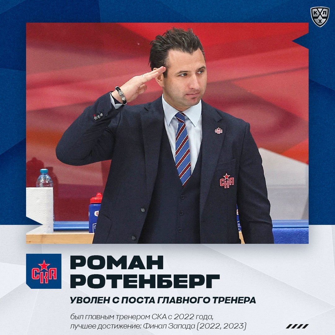 СКА объявил о досрочном расторжении контракта с главным тренером Романом Ротенбергом в связи с недостижением командой спортивных