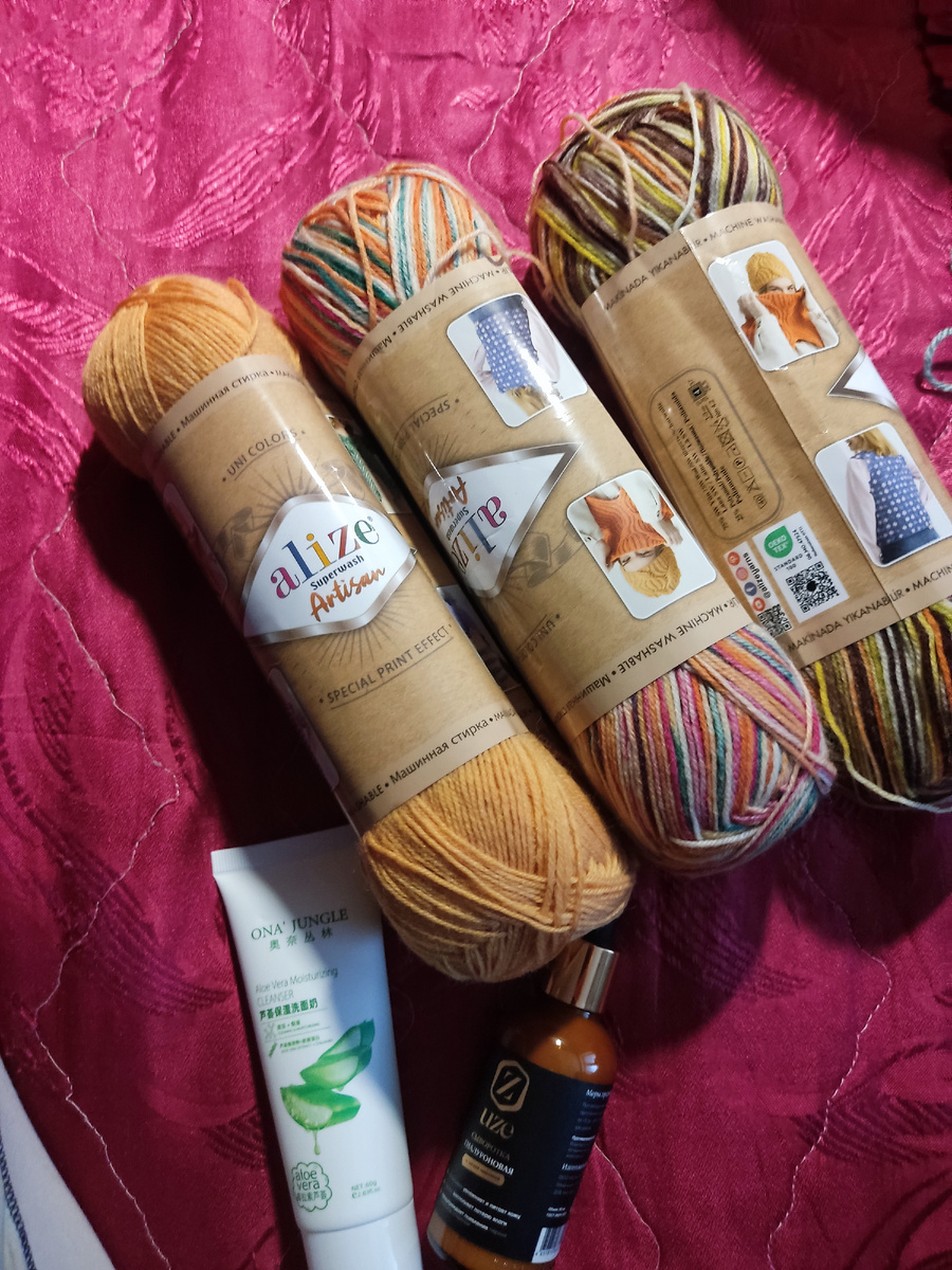 В этот раз речь пойдёт о пряже Alize Artisan. Я купила сразу набор из трëх мотков разных цветов 9006 281 9012 Пряжа совершенно разная не только по цвету, но и по ощущениям. Возможно, это зависит от красителей. Для начала я связала носки из мотка с цветом 9012 Как и всегда я размотала моток на два из центра, и вязала два носка параллельно от мыска. На ощупь (до вязания) пряжа мне казалась мягкой и "акрилистой" Во время вязания я уже ощутила что вяжу из шерсти. Нитка не тянулась. Использовала я спица 2,5 см. 60 петель (можно было и на 4 петли меньше) Пряжа из этого мотка редко расслаивалась и на сколько я помню была вполне ровной. Секции совпадали, сложностей в этом плане не было. Петли не всегда были ровными, но после ВТО и блокировки всё выглядит хорошо. Во время ВТО изделие пигмент не отдавало. Изделие после того как высохло не стало больше или меньше что тоже отлично. Когда носила носки дома, мне все понравилось. Потом постирала, снова заблокировала и уже на улице сперва
