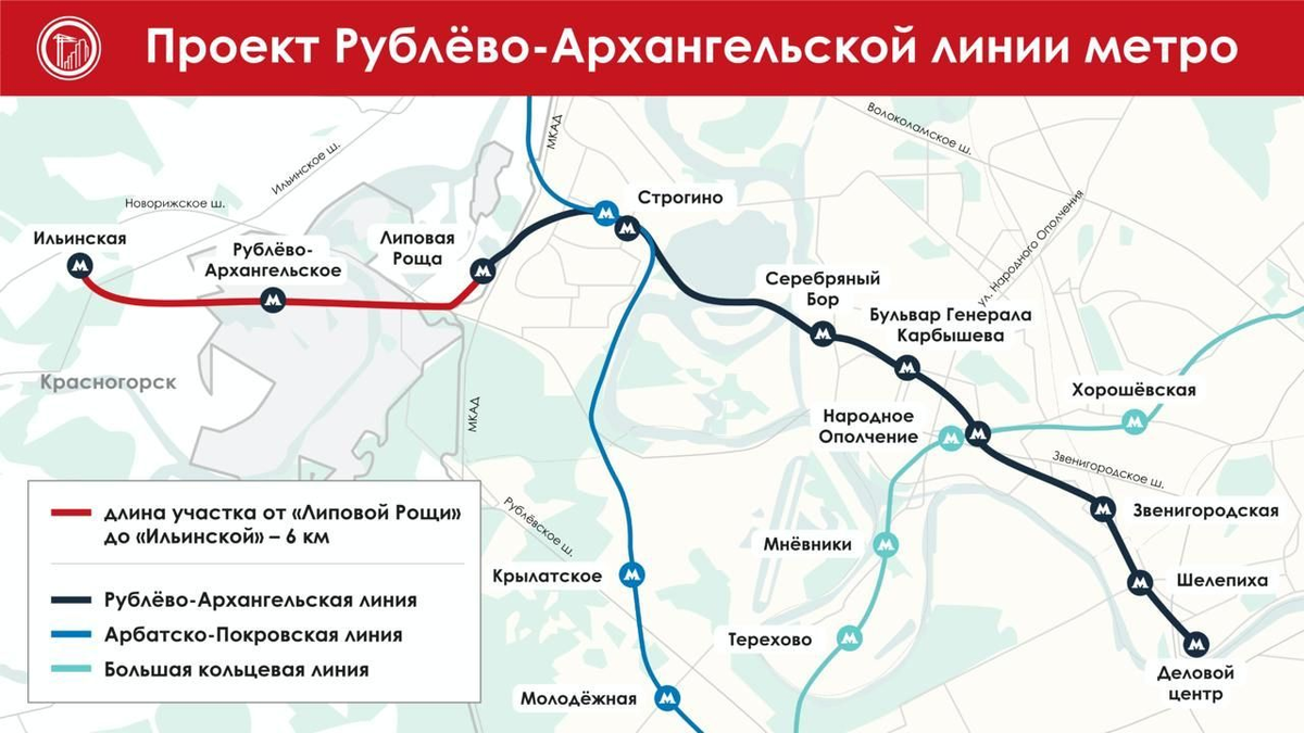 2 июня президент компании «Объединение “Ингеоком”», которая занимается строительством новой Рублево-Архангельской линии московского метро, Дмитрий Евсеев отчитался перед мэром Москвы Сергеем Собяниным о готовности нового участка метро. По его словам, работы идут в соответствии с графиком, что делает возможным запуск первого участка новой линии уже в 2026 году. Первый участок Рублево-Архангельской линии метро будет состоять из четырёх новых станций ("Шелепиха", "Звенигородская", "Народное Ополчение" и "Бульвар Генерала Карбышева") и соединит Москва-Сити с жилыми кварталами на северо-западе столицы. К настоящему времени завершено строительство тоннелей в обоих направлениях на участке "Звенигородская" - "Бульвар Генерала Карбышева". В январе 2025 года была завершена проходка правого тоннеля между станциями "Шелепиха" и "Звенигородская", проходка левого тоннеля на данном участке запланирована на август этого года. Также сейчас проводятся работы по проходке тоннелей до станции "Серебряный б