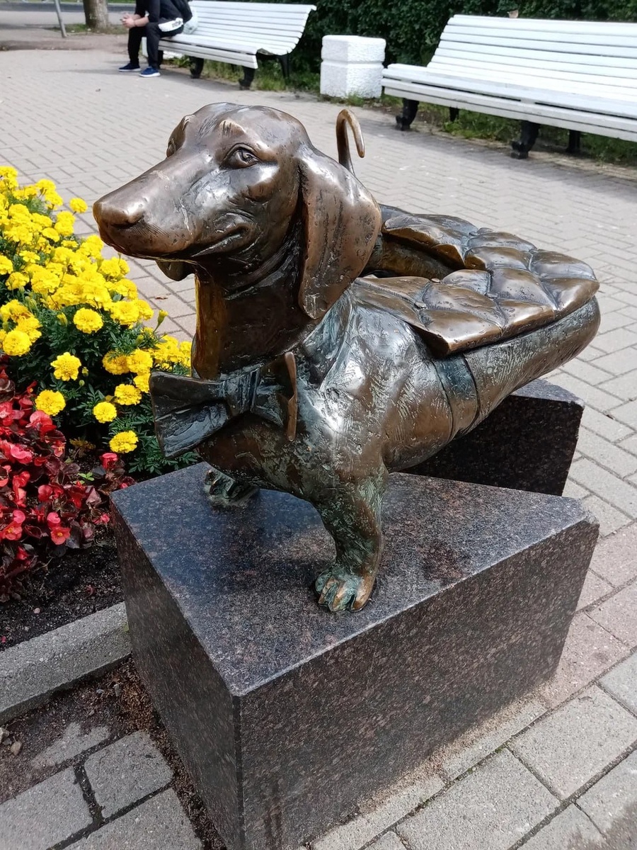 Самая забавная лавочка Зеленогорска Зеленогорск удивительно богат на необычные арт-объекты. Про Дерево счастья мы уже недавно рассказывали, а сегодня показываем самую известную скамеечку в виде таксы. Горожане настолько ее любят, что однажды кто-то даже похитил у нее хвост! Но вскоре его вернули на законное место. В гости к бронзовой таксе приезжают ее живые собратья со всего Петербурга, а в день города от этого памятника стартует такс-парад. 📍 пр. Ленина, 24, Зеленогорск #локация Подпишись на Вокруг Питера