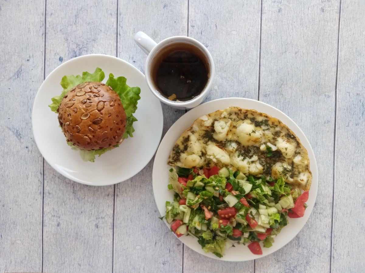 Кто бы мог подумать, что я буду скучать по подсчёту калорий и БЖУ). Приветствую вас. Я — Анна. Худею в 44 года с веса 130 кг. Сбросила 37 кг. Постепенно меняю образ жизни. Присоединяйтесь). Летом самое время худеть. Сходила вчера на рынок — накупила себе овощей, фруктов и ягод. Цены уже очень приятные и всё вкусное. Зимой тысячу в овощном киоске оставишь и ничего не принесёшь). А вчера на тысячу еле дотащила пакет — огурцы, помидоры, редиску, кабачки, салат, черешню, клубнику и абрикосы. Так что наедаемся впрок ягод — запасаемся витаминами). В этом году летом-осенью планирую заморозить кое-какие овощи и ягоды. Вчерашние тарелочки. Завтрак. Омлет с цветной капустой и зеленью, салат. И захотелось чего-то бутербродного. Сделала бургер с курицей, солёным огурцом, помидором, луком и кефирным соусом. Второй завтрак. Творог со сметаной и ягодами. Обед. Курица, пшено и салат. Ужин. Рассольник и мороженое. На ближайшие 4 дня это будет мой стандартный ужин, пока кастрюля с рассольником не зако