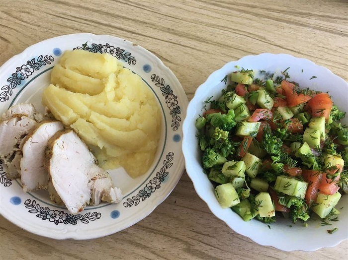 "Я уже несколько лет составляю меню на месяц и, уже исходя из планов, покупаю в супермаркетах продукты. Если у меня перед походом в магазин остаются гречка, рис, то сначала мы съедаем их, а потом только я покуплю что-то другое. Некоторые овощи мы привозим с дачи от родителей. Зелень я выращиваю сама. Тратим на продукты где-то 12 тысяч в месяц. Мы не едим хлеб, привыкли так, ещё сама делаю много заготовки: котлеты, фрикадельки, заморозки.