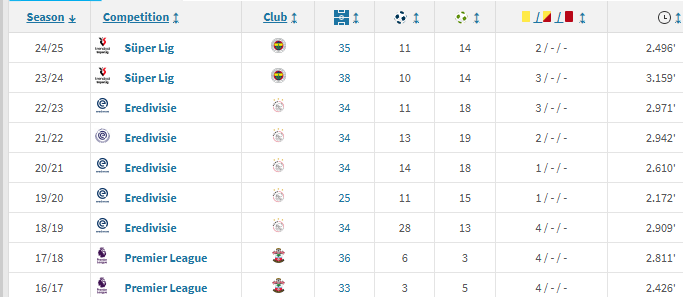 Кроме этого семь сезонов подряд Душан Тадич набирал более 10 голов и голевых передач, что также впечатляет.