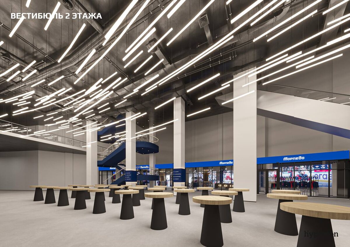 Как будет выглядеть новая арена внутри? 🏒 Всегда хочется заглянуть в будущее! Благодаря дизайнерам, мы можем это сделать прямо сейчас 🤩 Вот такие просторные, стильные и современные фойе встретят болельщиков на новой ледовой арене в Нижнем Новгороде👍