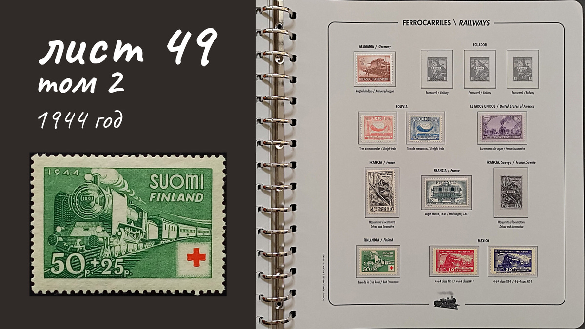 11. Финляндия, 1944 год, № 278. Быстроходный локомотив типа Hr 1 с госпитальным поездом. Красный крест. В галерее полная серия марок и конверт прошедший почту (нажмите правую стрелку).