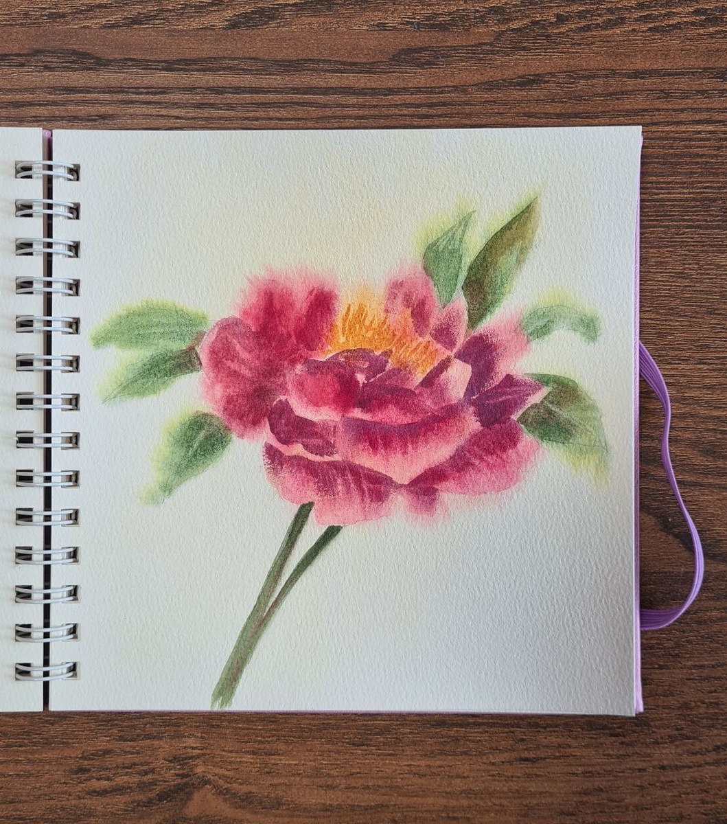 Сразу по следам урока решила отработать навыки и ещё в таком стиле порисовать. Запуталась в лепестках. Вышел ни пион, ни роза, а неведома зверушка. Но если издалека смотреть вроде и ничего #акварель #ботаника