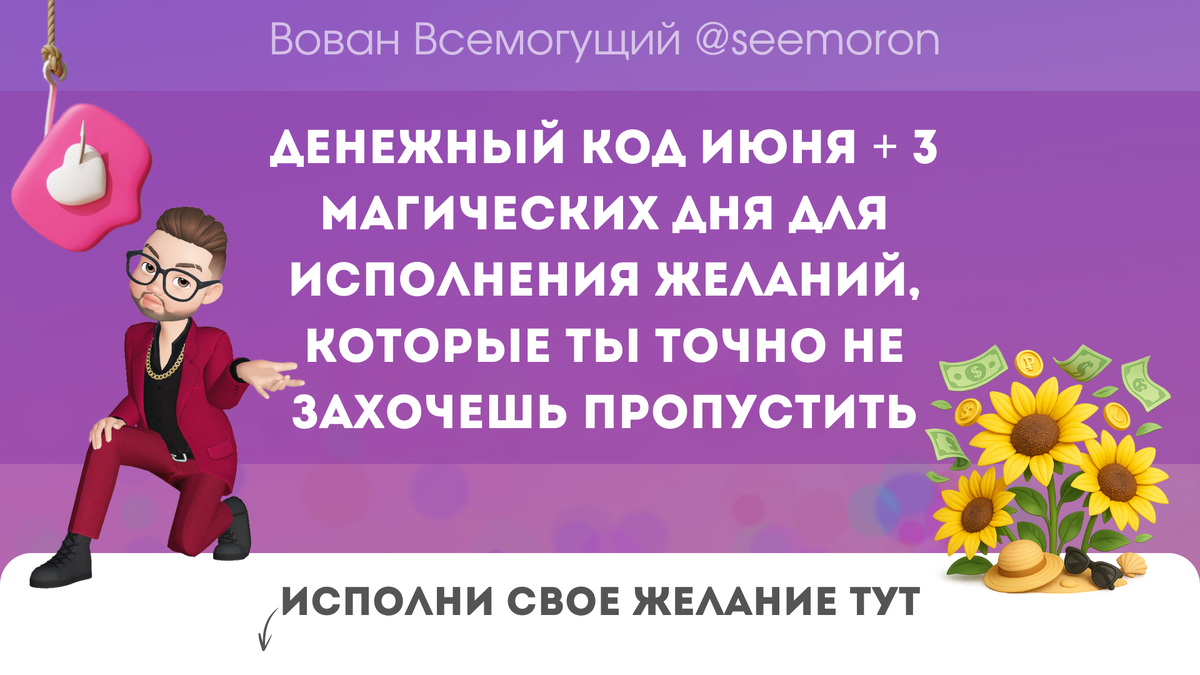 Денежный код июня + 3 магических дня для исполнения желаний, которые ты точно не захочешь пропустить