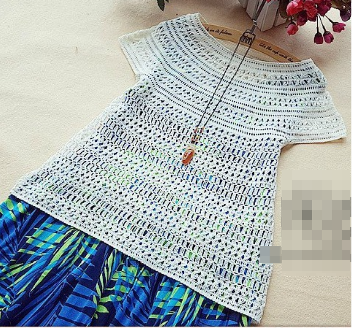 Сначала я покажу вам простую красивую тунику с круглой кокеткой. Вот выкройка и схема её вязания: А теперь обратите внимание на эту схему: Здесь между круглой кокеткой и полотном подола есть ряды, связанные частичным вязанием, укороченные ряды. За счет этого у изделия хорошая посадка, на спинке нет "волдырей". Вот эта кокетка тоже круглая, но она хорошо сидит, потому что закругление у неё заканчивается на проймах, а дальше вязание идет ровно: Если мы вяжем изделие регланом сверху, таких проблем нет: