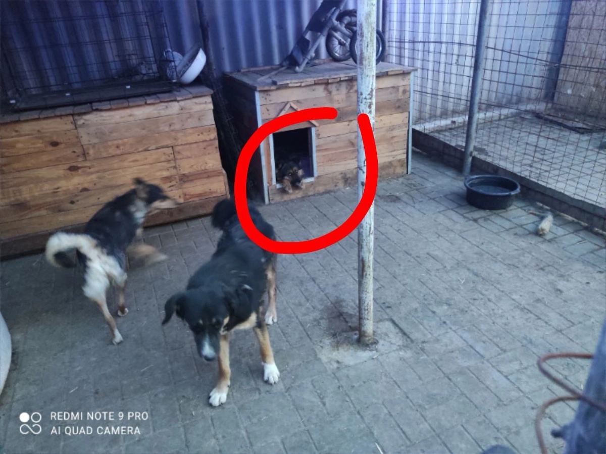 А тем временем один из новеньких жителей приюта Мишаня обустроился в вольере в новой будке...Он днём тусит со всеми на выгуле...Ну а