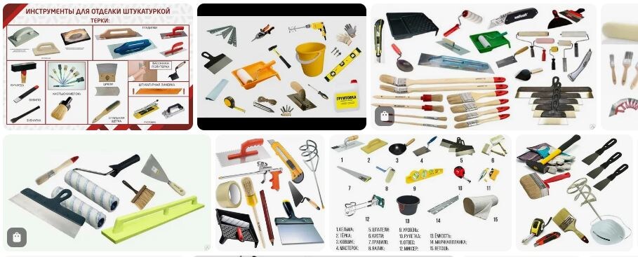 Для отделочных работ нужны соответствующие инструменты и материалы. При оштукатуривании стен и потолков используют не один десяток инструментов. К ним относятся штукатурный ковш, сокол, кельма, гладилки, терки, полутерки и прочие инструменты. Их так много, что всех не перечислить. Если же их нет, то обычно используют что-то подобное или пользуются какими-то подручными средствами.