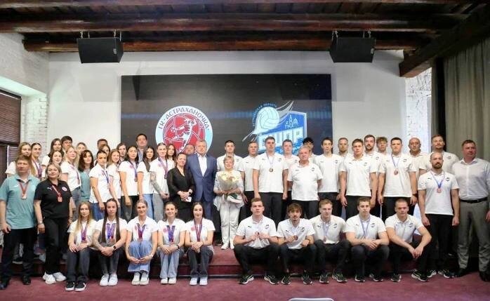 Сегодня в торжественном мероприятии губернатор поздравил две астраханские команды – гандбольную «Астраханочку» и ватерпольное «Динамо-СШОР» - с успешным завершением сезона-2024/2025: оба игровых коллектива сумели завоевать бронзовые медали в главных соревнованиях страны - чемпионатах России. Кроме того, «Астраханочка» стала серебряным призером в Кубке России (ремарка от редакции: у ватерполистов есть шанс и в этом сравняться с гандболистками – Кубок России по водному поло стартует завтра в Казани). «Конечно, не без сложностей, но вы достигли высокого результата в чемпионатах России по гандболу и по водному поло. И эта бронза – ваша общая победа, победа всего региона. Спасибо за ваш труд, характер и безграничную преданность спорту!», - отметил Игорь Бабушкин. В ходе церемонии глава региона, помимо поздравлений игроков и тренеров команды, вручили удостоверения и нагрудные значки мастеров спорта четверым ватерполистам. В свою очередь, спортсмены подарили Игорю Бабушкину выигранные медали