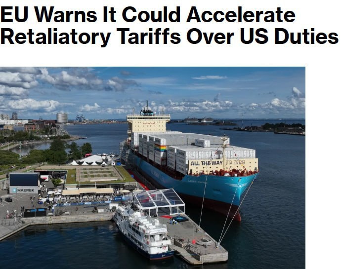 ЕС предупреждает, что может ускорить введение ответных пошлин на пошлины США, сообщает Bloomberg.