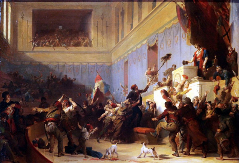 Самый драматичный момент второго из этих восстаний, прериальского, в мае 1795 года, заключался в том, что разъярённый народ ворвался в зал заседаний термидорианского Конвента, убил одного из депутатов и оторвал ему голову. Фамилия депутата была Феро, собственно, кроме своей гибели, он ничем в истории особо не отметился. Есть версия, что его погубило созвучие его имени с фамилией гораздо более известного депутата Фрерона, организатора банд «золотой молодёжи», мюскаденов, французских «стиляг». Фрерона простонародье люто ненавидело — ещё бы, парижские «стиляги» мюскадены, вооружённые суковатыми палками, налитыми свинцом, толпами бродили по улицам и немилосердно избивали встреченных ими «жлобов» санкюлотов, а то и убивали их.