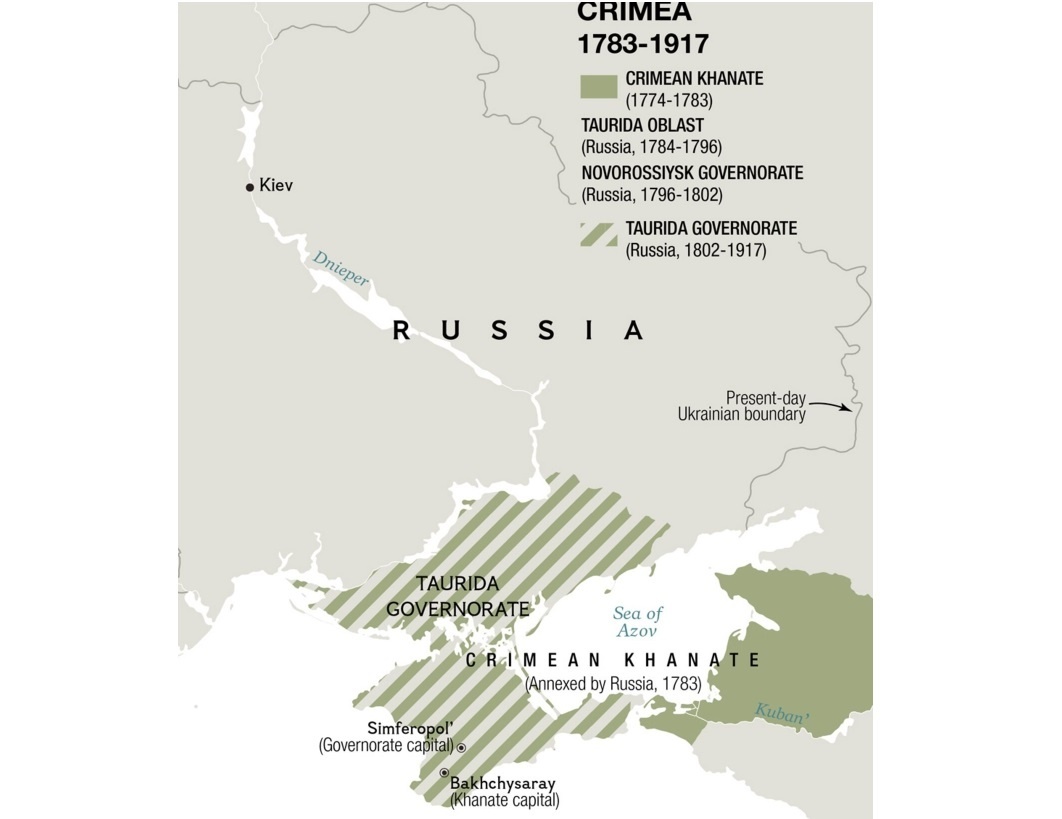Крым является основной геополитической и стратегической зоной на карте мира. Именно по этой причине, полуостров за свою многовековую историю часто переходил от одних государств к другим. Древние иранские племена (киммерийцы) и греки, за которыми следовали готы и венецианцы, были лишь немногими из многочисленных захватчиков Крымского полуострова. Будучи вассальным государством Османской империи с 1478 года, Крым превратился в несколько политических образований после русско-турецкого договора 1774 года: В ходе русской революции, Крым за этот трехлетний период сменил владельца и официально получил несколько новых названий: После восстановления советского контроля в конце 1920 года, Крым стал автономной Советской Социалистической Республикой, пока территория не была аннексирована фашистами во время ВОВ, но в 1945 году вернулась под контроль России: В конце советской эпохи, Крым был передан по каким-то непонятным причинам нашим соседям, а административный статус полуострова, был повышен нак