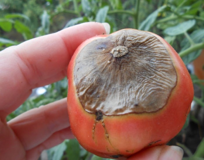 Здравствуйте дорогие мои подписчики и все те, кто случайно заглянул на мой канал "Дачные прелести"! Одна из самых частых проблем, с которыми я сталкиваюсь при выращивании томатов – будь то на открытых грядках, под плёночным укрытием или в теплице – это вершинная гниль. К счастью, это заболевание не заразное, что уже хорошая новость! Но если условия складываются неудачно, потери урожая могут достигать 30%, особенно если к процессу подключаются грибки или патогенные бактерии. Вот как я справляюсь с этой напастью. Характерный симптом присутствия болезни в посадках – формирование на верхушках плодов плоских сухих пятен различной конфигурации, имеющих бурый или почти черный цвет. Такие участки, как правило, немного вдавлены в томаты. Под коричневым пятном ткани плода постепенно размягчаются и медленно гниют. Обычно поврежденные помидоры не успевают созреть и опадают. Ухудшение ситуации в посадках культуры наступает, когда в пораженный эпидермис плодов проникают патогенные микроорганизмы.