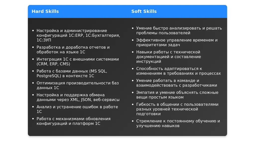 Анализ вакансии для специалиста по поддержке пользователей 1С