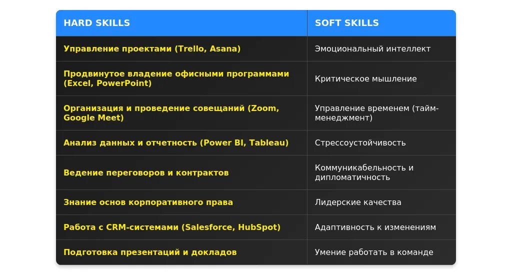 После: Продвинутые навыки работы с Microsoft Office (Word, Excel, PowerPoint) и CRM-системами (Salesforce, Bitrix24).
