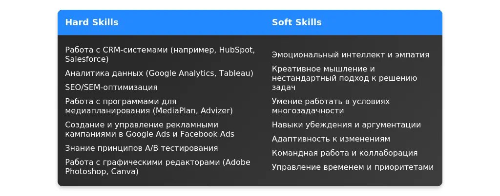 Технические навыки для сотрудника в отдел рекламы