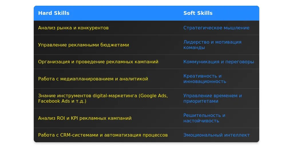 После адаптации: "Знание CRM-систем (Salesforce, HubSpot), опыт работы с Google Analytics, управление рекламными бюджетами."