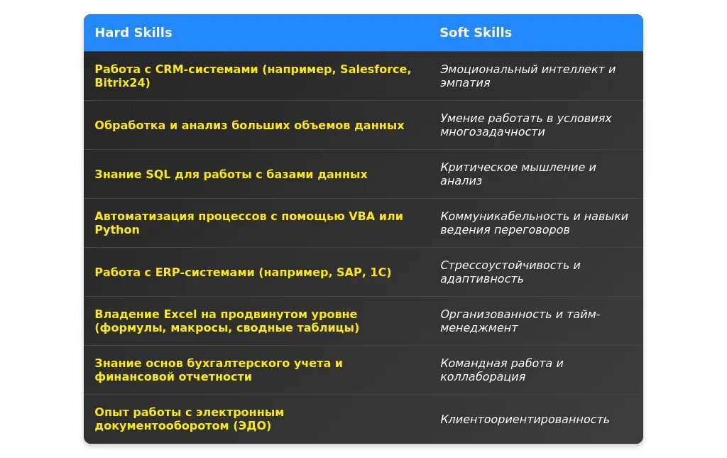 Пример 1: Вакансия требует опыт работы с CRM-системами. Обратите внимание на навыки работы с конкретными системами, такими как 1С или Salesforce.