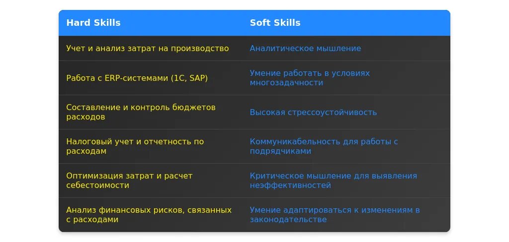 - Ключевые навыки: управление расходами, бюджетирование, оптимизация затрат.