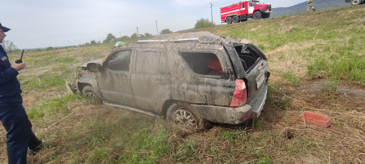 Автомобиль Toyota Hilux Surf вылетел с трассы и опрокинулся: https://ys.news/news/post/7152/