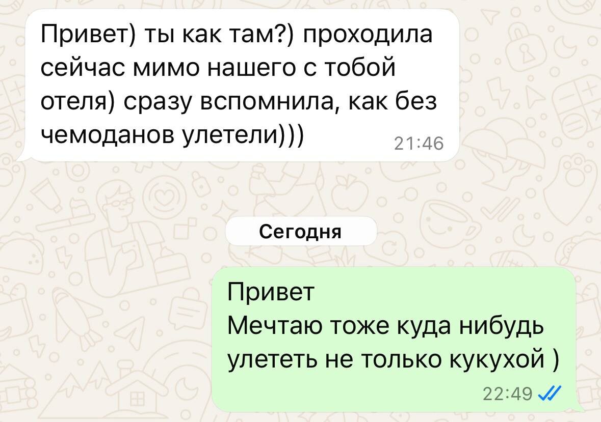 А вот кукуха моя чемоданы уже собрала 😀 Мои актуальные диалоги в этом году)🥲