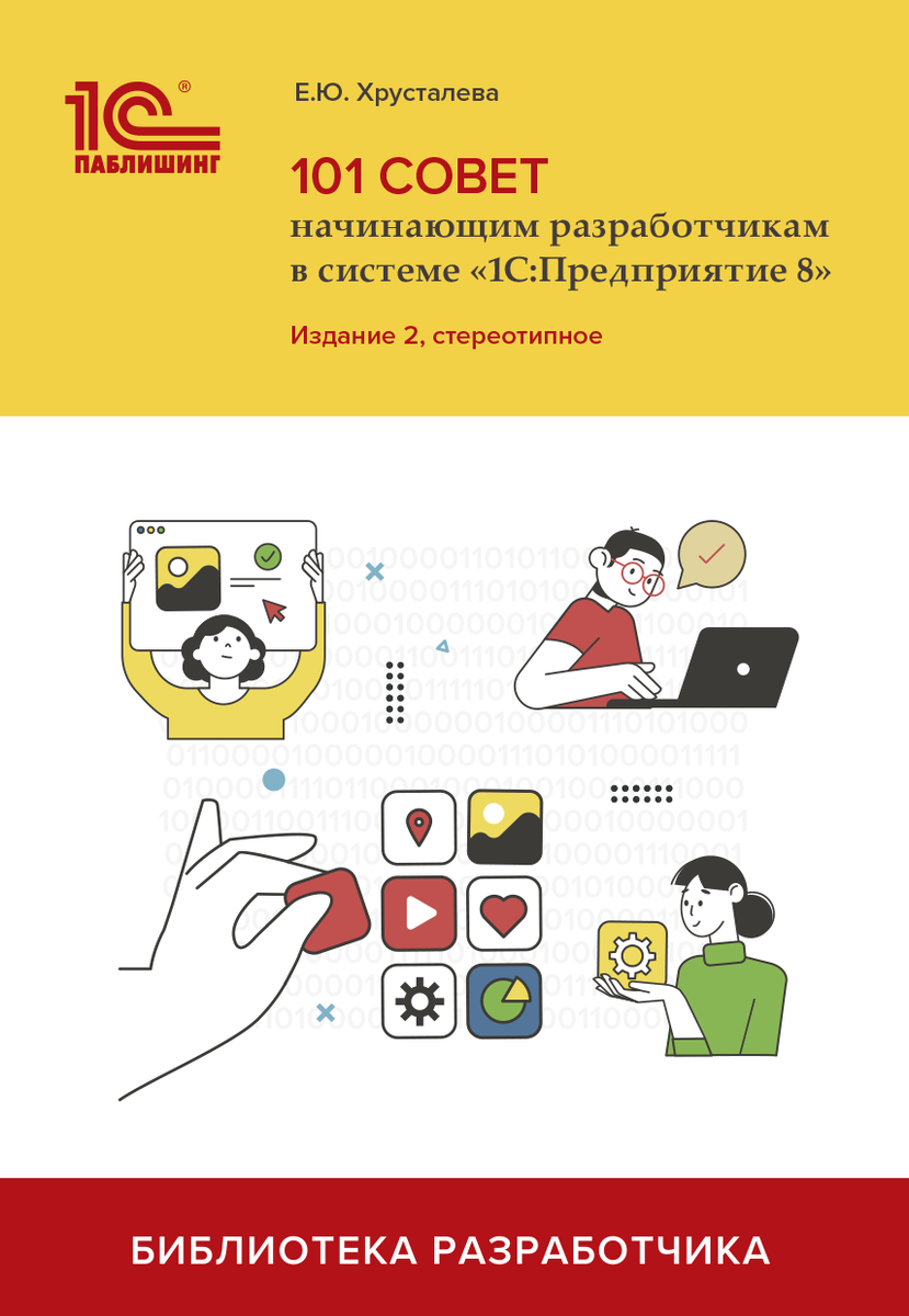 Для разработчиков 1С, одним из которыми являюсь и я, издательство 1С Паблишинг выпустило достаточно полезной литературы, охватывающей различные профильные области знаний. Это такие, например, широко известные и обязательные к прочтению произведения как Язык запросов «1С:Предприятия 8» и Разработка сложных отчетов в 1С:Предприятие 8 от Е. Хрусталевой. О них я, вероятно, напишу в другой раз. А сегодня хотелось бы обсудить наверно не такую известную, но тем не менее очень полезную книгу, особенно для начинающих программистов 1С, а именно: 101 совет начинающим разработчикам в системе «1С:Предприятие 8 этого же автора.