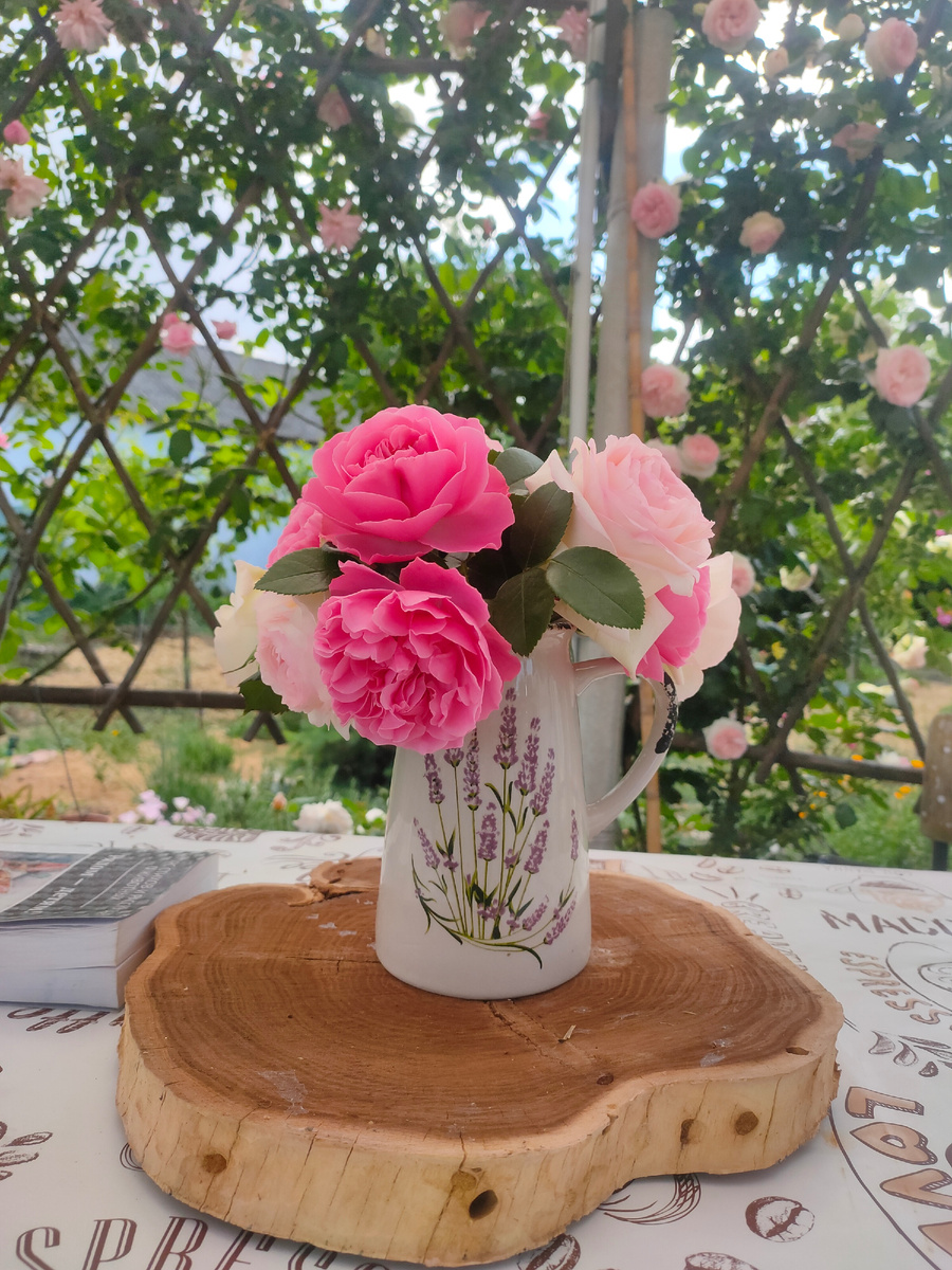 Ну розария как такового мы не делаем, не люблю их. Розы у нас вообще появляются в неожиданных местах. То на беседку лезут, то вокруг уличного туалета красуются, то на огородной грядке, то под виноградом... Бывает, возле машины выпрыгнут... Бывает, под окном выскочат... Или просто в каком-то углу вдруг что-то зацветёт... Кто знает, где они ещё могут вдруг образоваться🤷 Но что-то мне подсказывает, что они вполне могут и вокруг курятника образоваться, и бочку для воды спрятать в конце огорода... Хорошие ребята, работящие:)