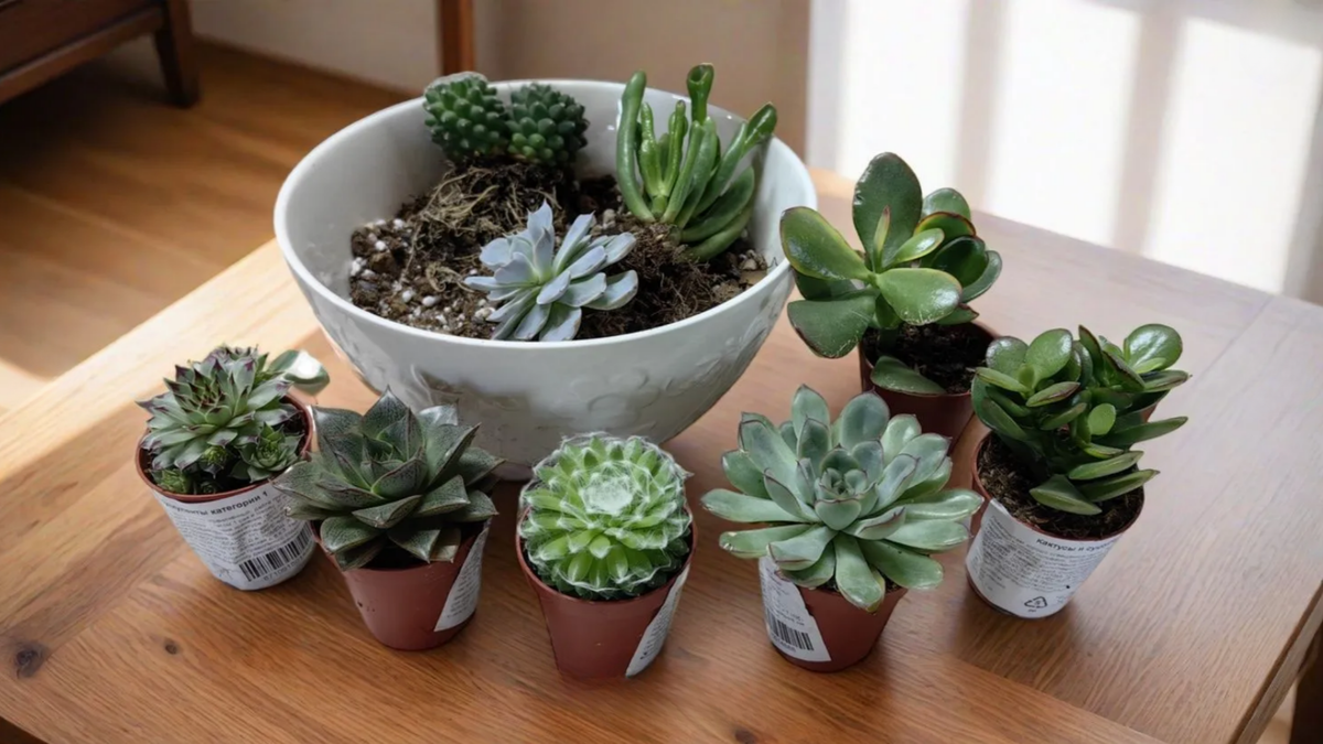 Салатник из Фикс-прайса в качестве горшка для суккулентного садика