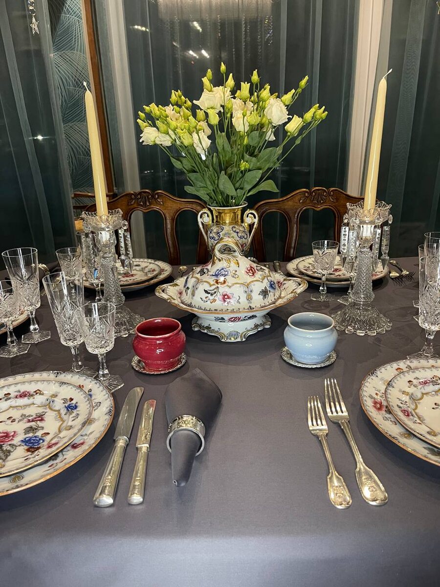 Оттенок голубого в точности напоминает цвет вечернего неба. А бордовый будто спорит с голубым, или наоборот оттеняет его. Но вместе эти горшочки, выполненные на фабрике Кузнецова, просто чудо как хороши.