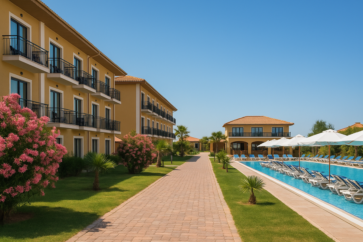 Отель расположен в 0 метрах от моря, на первой линии. Территория ухожена, есть зона для отдыха. Подходит для семейного отдыха.