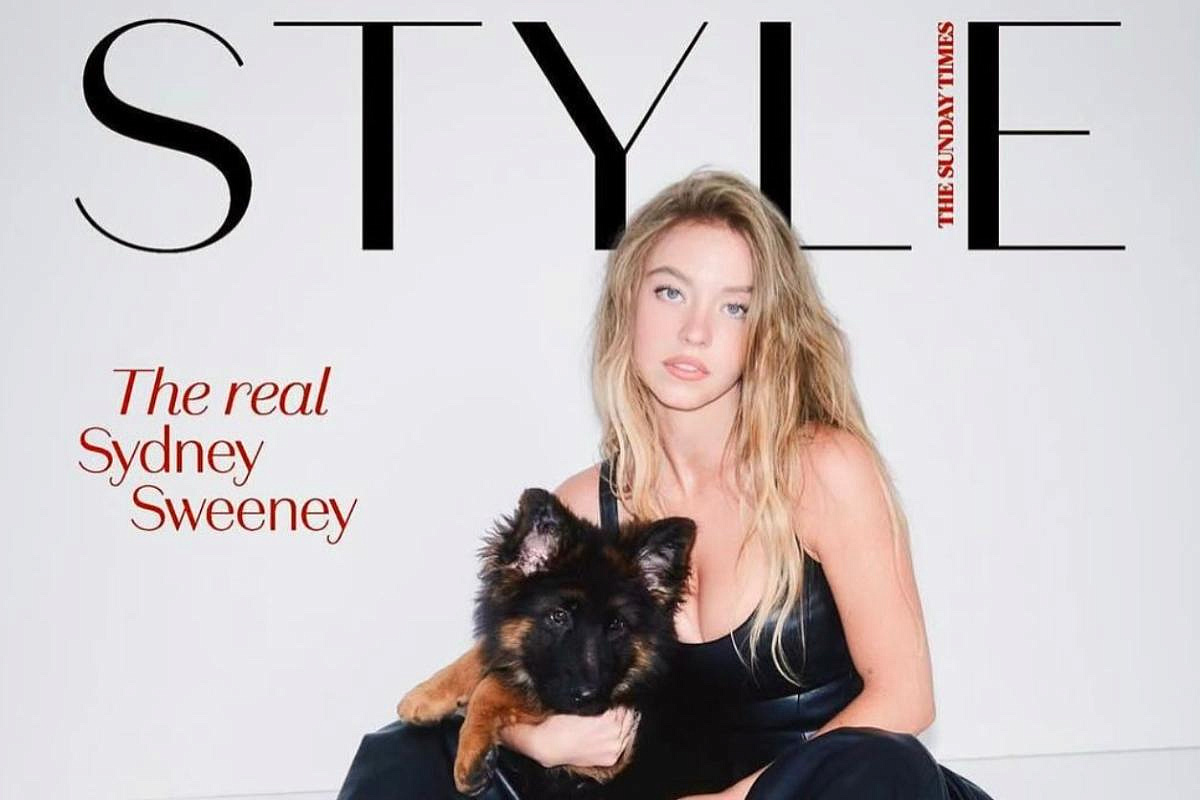 светлыми локонами и щенком в объятиях. Подпись рядом: “The real Sydney Sweeney”. За лаконичным кадром — сложная и противоречивая история