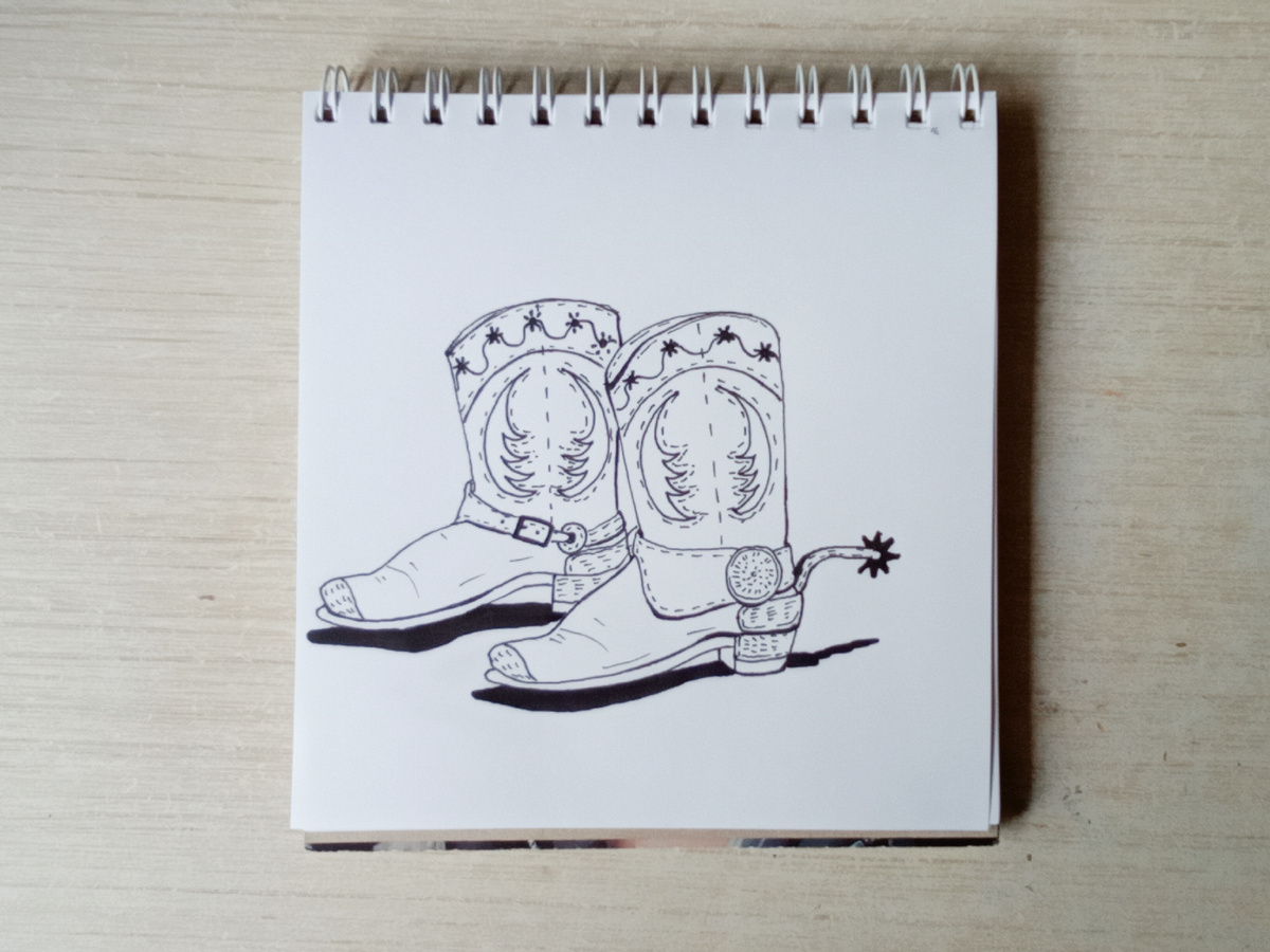 Всем чернично-космический привет! На этой инктоберской неделе было задание spur - шпора. Ну что приходит первым на ум? Конечно, Дикий Запад и ковбойские сапоги. Подыскала референсы сапог со шпорами и быстренько зарисовала. Снова пришлось рисовать два одинаковых объекта, как и с прошлым заданием "Близнецы". Но сапоги, мне так кажется, не получились на все сто процентов идентичными. Хотя выглядит пара неплохо. Кстати, любопытно наблюдать, как скетчбук наполняется необычными вещами. Закончив с рисованием, решила не только опубликовать рисунок, но и собрать интересные факты о сапогах. Например, я и не задумывалась читать о них, как-то не было повода. И вот он нашёлся. Давайте почитаем вместе. Надеюсь, вам будет интересно. Начинаем. Ковбойские сапоги со шпорами являются не просто обувью, но и главным символом Дикого Запада. Первые ковбойские сапоги появились в 19 веке в западных штатах Америки. Первое - данная обувь предназначалась исключительно для защиты всадника от грязи, змей, ко