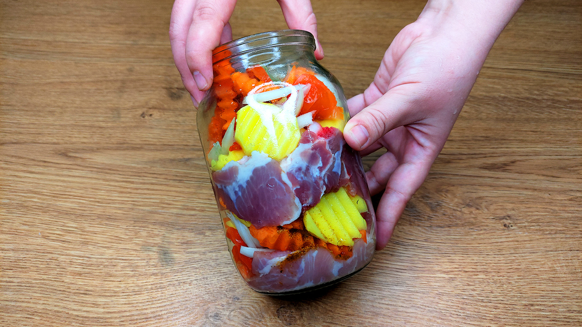 Привет, друзья! Знаете, что я недавно открыла для себя? Готовить в обычной стеклянной банке! Сначала отнеслась скептически — ну серьёзно, это же не казан и не духовка... А потом попробовала, и теперь подсела! Мясо получается мягким, буквально ложкой ешь. А овощи — насыщенные, с ароматом специй и лаврового листа. Этот рецепт — палочка-выручалочка, когда хочется домашнего уюта и минимум грязной посуды. Банку в духовку — и через час у вас ужин мечты. Что нужно: Как готовим: Готовим ингредиенты. Картошку нарезаем крупными кубиками, морковь — кружочками или полосочками, перец — полосками. Лук полукольцами, чеснок можно раздавить ножом. Мясо маринуем. Рёбрышки нарезаем порционно, солим, посыпаем специями. Можно дать постоять 10–15 минут. Собираем всё в банку. На дно кладём немного лука, далее — мясо, потом слоями овощи. Между ними — лавровый лист и чеснок. Заканчиваем слоем картошки. Банку не наполняйте до самого верха — оставьте 2–3 см. Закрываем. Важно: крышкой не закручиваем! Просто накр