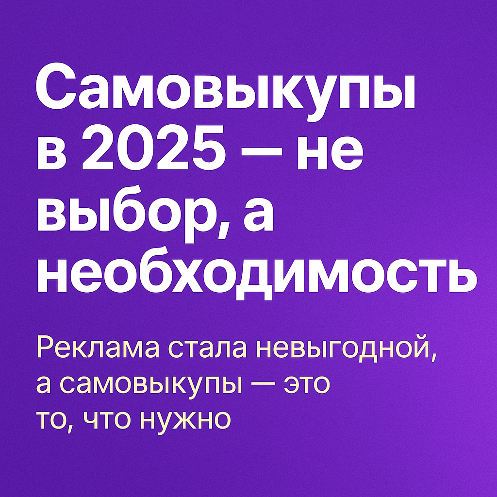 Реклама на Wildberries в 2025 году — это уже не золотая жила. Стоимость клика выросла, конверсия падает, а бюджеты «съедаются» без реального эффекта. Все больше селлеров сталкиваются с тем, что реклама не отбивается, а карточки тонут в выдаче. 🔥 А вот что реально работает — это самовыкупы. Алгоритмы WB по-прежнему «любят» активность: продажи, конверсии, сохранения. Самовыкуп — это быстрый старт, мощный толчок и вывод в топ за считанные дни. 📈 Почему самовыкупы стали незаменимыми: — Вывод карточки в ТОП без слива бюджета — Улучшение поведенческих метрик — Рост органических продаж — Контроль за процессом (в отличие от рекламы) Если ты до сих пор надеешься, что реклама "выстрелит" — пора менять стратегию. 2025-й — год умных решений, и самовыкупы сейчас — главный инструмент продвижения.