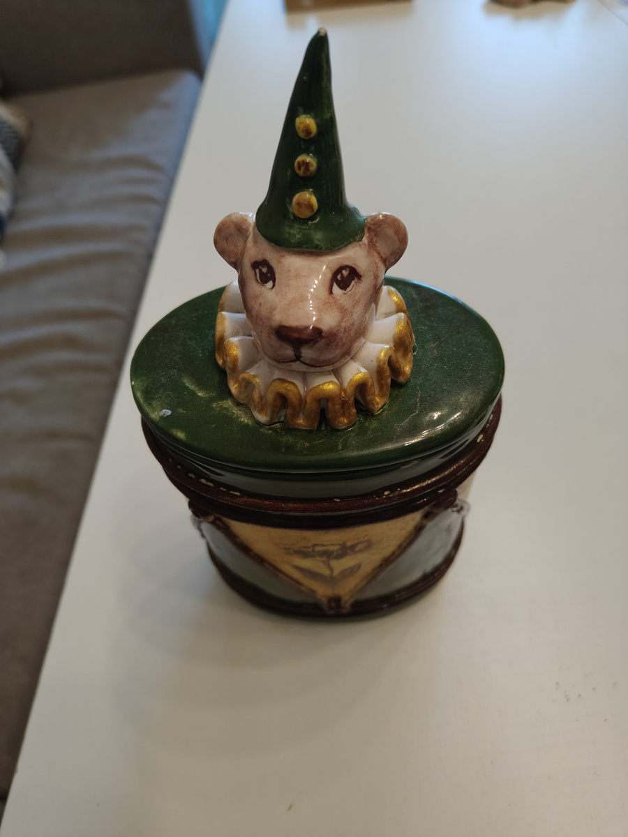 Это баночка (не знаю насколько применим такой термин к керамическому изделию), которую моя знакомая использует для хранения кофе. Я как начала тут поститься теперь если бываю в гостях у людей, кто юзает мои изделия, то фоткаю их для пикабушечки.