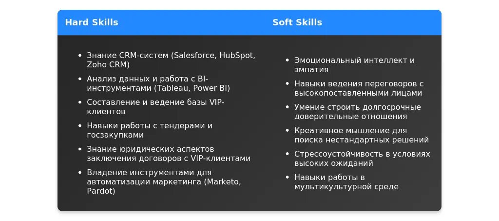 - Указаны ли ключевые навыки для работы с VIP-клиентами?